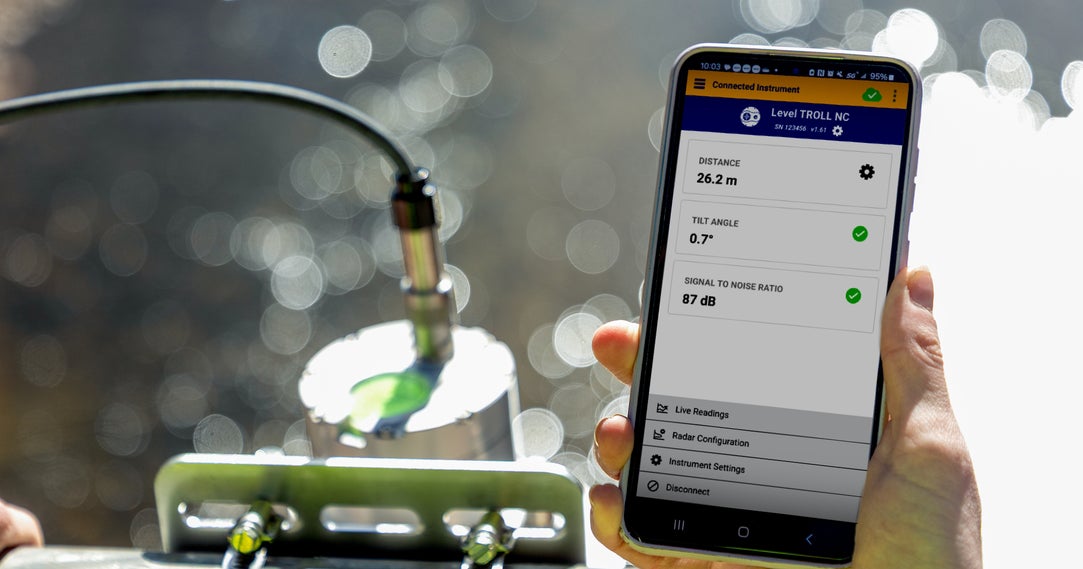 LevelTROLL NC är en trådlös nivåmätare som mäter avståndet till vattenytan med hjälp av radar.